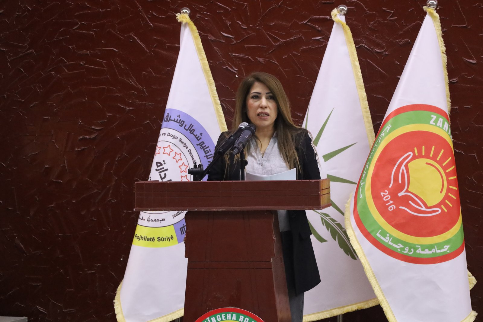 وباسم طلاب جامعة روجافا المتخرجين، تحدثت آرين محمد، والتي عبرت عن فخرها باعتبارهم طلاب درسوا بلغتهم الأم منذ انطلاقة ثورة روجافا، مؤكدة على التزامهم ببناء نظام عدالة يستند إلى فكر القائد عبد الله أوجلان، ومشيدة بدور جامعتهم في توفير التعليم باللغة الأم.