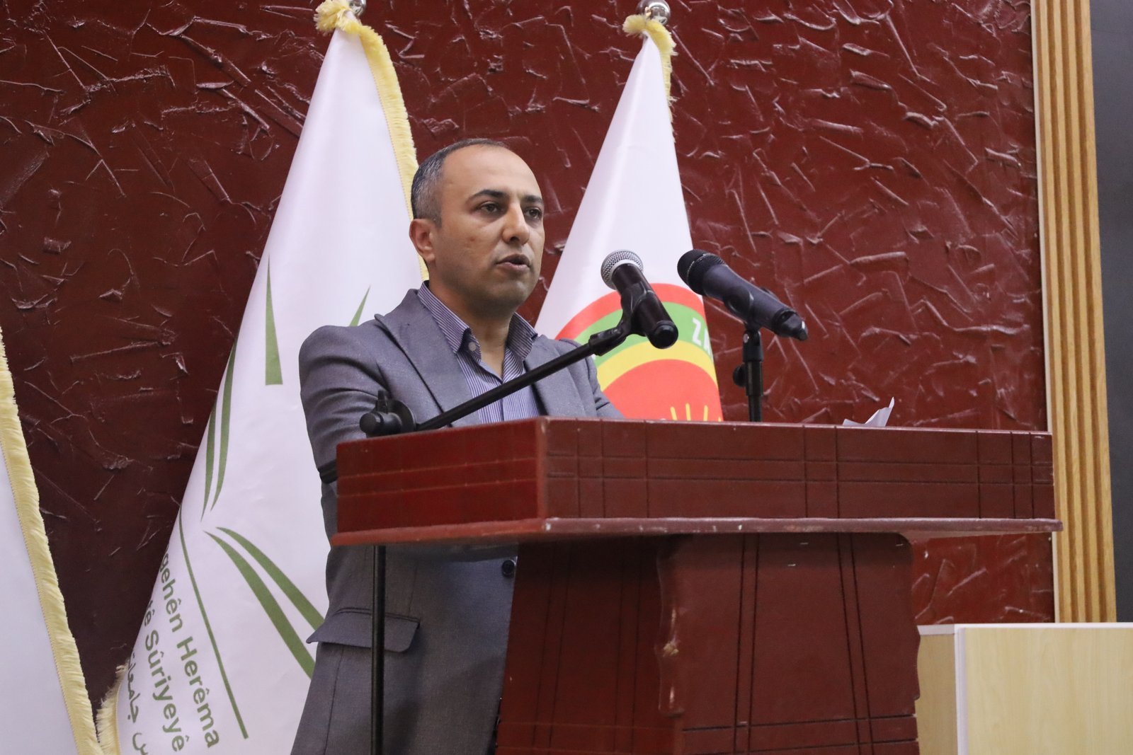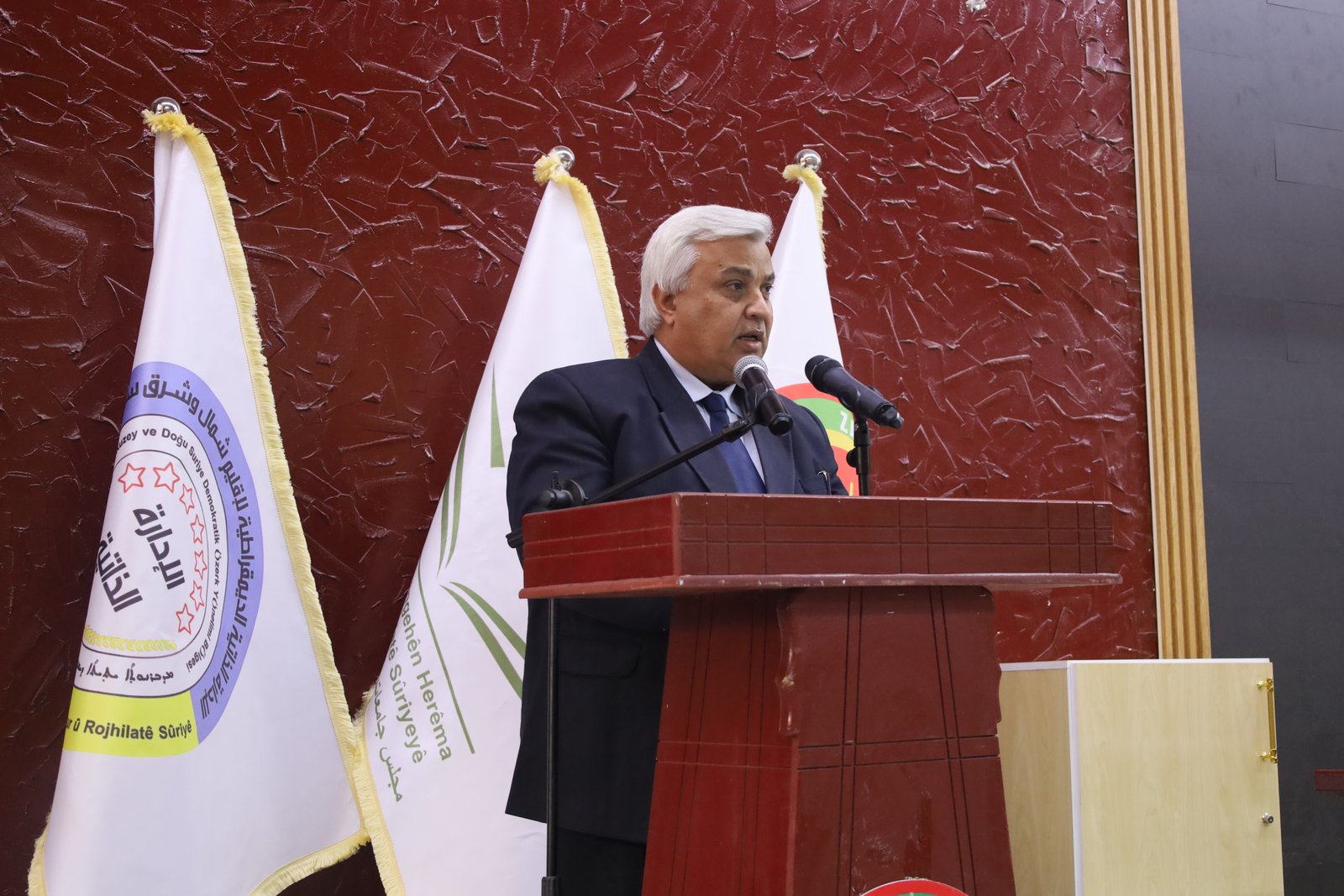 من جانبه، استذكر ممثل مؤسسة عوائل الشهداء عبدالكريم عبدو تضحيات الشهداء الذين ضحوا بدمائهم لتحقيق الأمن والسلام في المنطقة، مؤكداً أن تلك التضحيات ساهمت في ازدهار العلم والوصول إلى هذا اليوم، مشدداً في الوقت ذاته على أهمية العدالة في المجتمعات، خصوصاً في المرحلة الراهنة التي تمر بها سوريا.